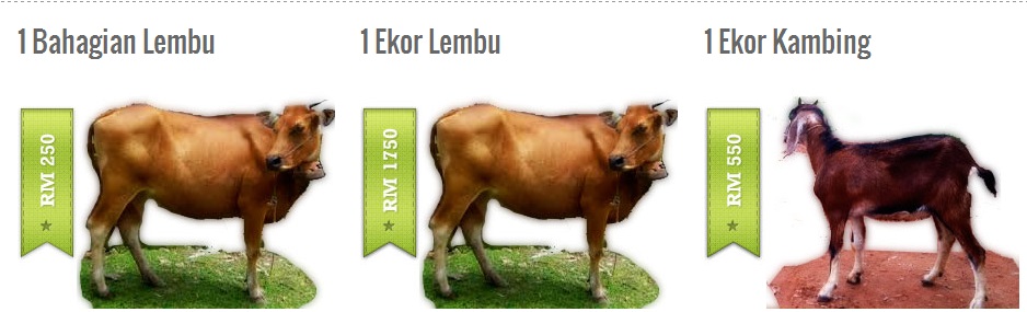 Harga seekor lembu korban atau sebahagiaannya dan harga seekor kambing korban adalah seperti berikut: