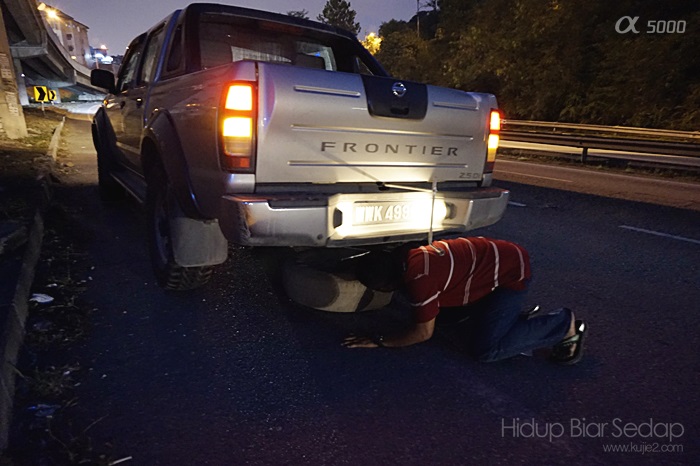 Tidak berani tukar di tepi lebuh raya kecuali kalau terpaksa. Sebelum pernah berlaku minta bantuan dari Plus Ronda.