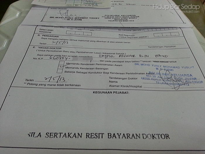- Bawa borang JPJL8 berjumpa doktor untuk pemeriksaan kesihatan