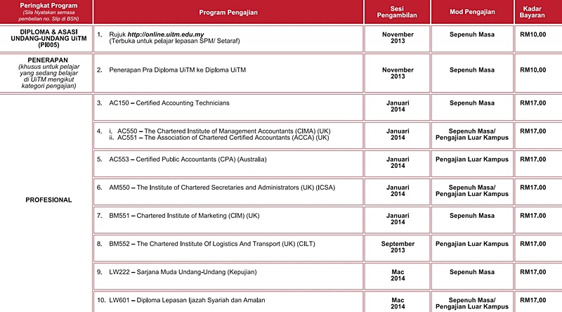 - Program Diploma & Asasi Undang-Undang harga Slip BSN RM 10.00