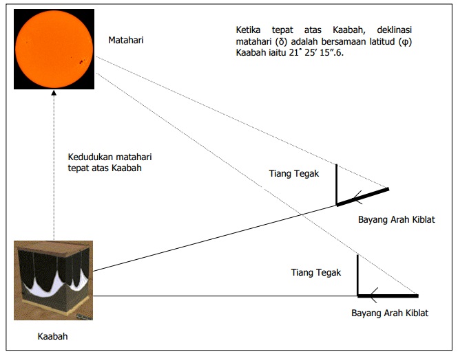 peristiwa ini hanya berlaku 2 kali setahun yang akan memberi kesan bahawa semua bayang tegak akan tepat ke arah kaabah