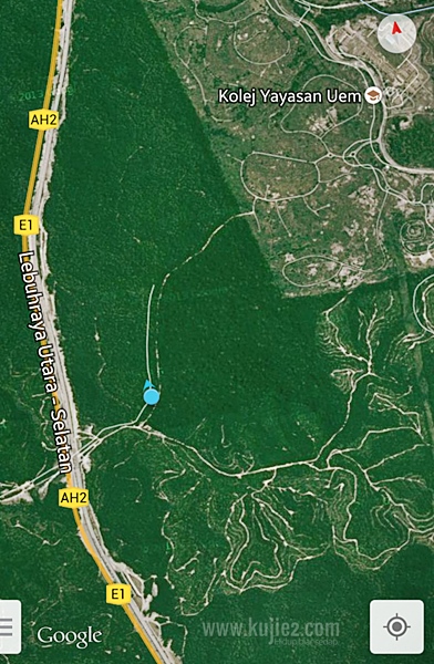 Macam ni lah jalan yang nampak gah dalam Google Map tu, bukan jalan bertar cantik tetapi laluan pekerja ladang. Kami melintasi Lebuhraya Utara Selatan.