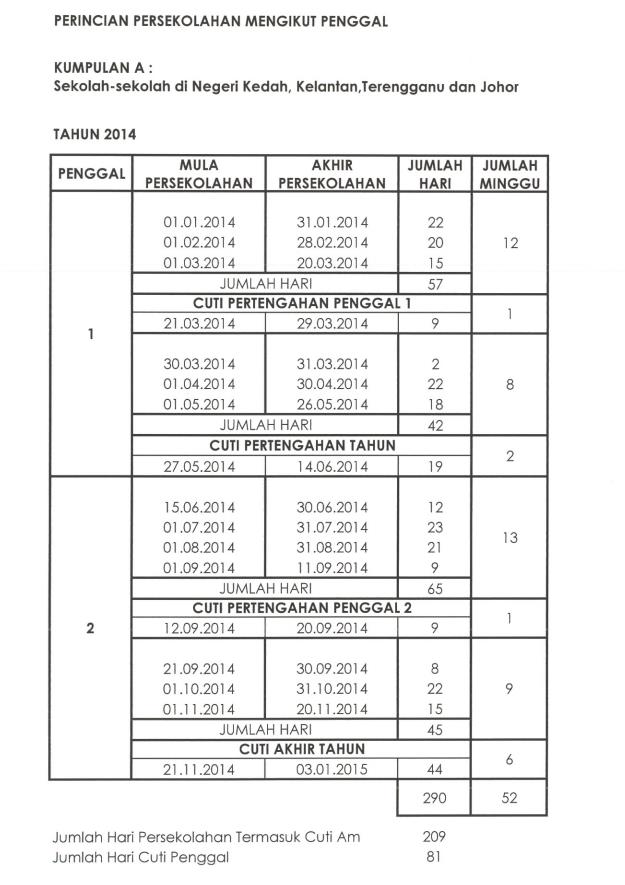 Jadual persekolahan 2014 telah dikeluarkan oleh Kementerian Pelajaran Malaysia (www.moe.gov.my).