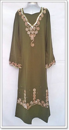Ini jubah Intan, Oliver Green rekaan gaya Arab menggunakan kain jojet selapis dan sentuhan labuci dan sulaman. Sulaman dia kemas. Nak buat pilihan pun senang sebab disediakan ukuran penuh bagi setiap saiz yang ada ; bahu ke tangan, lebar bahu / pinggang / bawah, labuh bahu ke bawah.