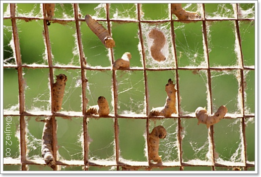 ulat2 sutera sedang gigih membina rumah untuk berlindung~