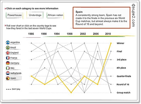 Sepanyol menjuarai Piala Dunia 2010 menewaskan Belanda 1 -0. Keputusan pengadil adalah muktamad. Graf pencapaian yang memberangsangkan.