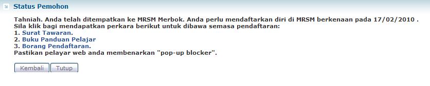 EDIT : Semakan Permohonan MRSM Tingkatan 1 Tahun 2010