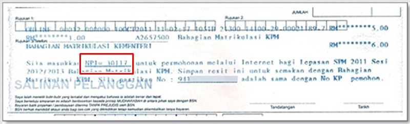 Jangan lupa, bawa Kad Pengenalan. Sekiranya tidak mempunyai Kad Pengenalan ATAU mendapat Kad Pengenalan selepas pendaftaran SPM, sila gunakan nombor Lembaga (No LPM) seperti yang tercatat dalam slip pendaftaran SPM tahun semasa untuk membuat permohonan melalui internet (PMI) di kaunter BSN sahaja.