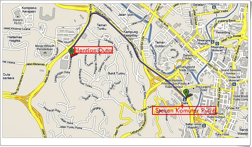 Kalau berkenderaan sendiri, mudah untuk sampai – melalui Bulatan Segambut masuk Jalan Duta . Jarak sepelaungan , kata klasiknya.