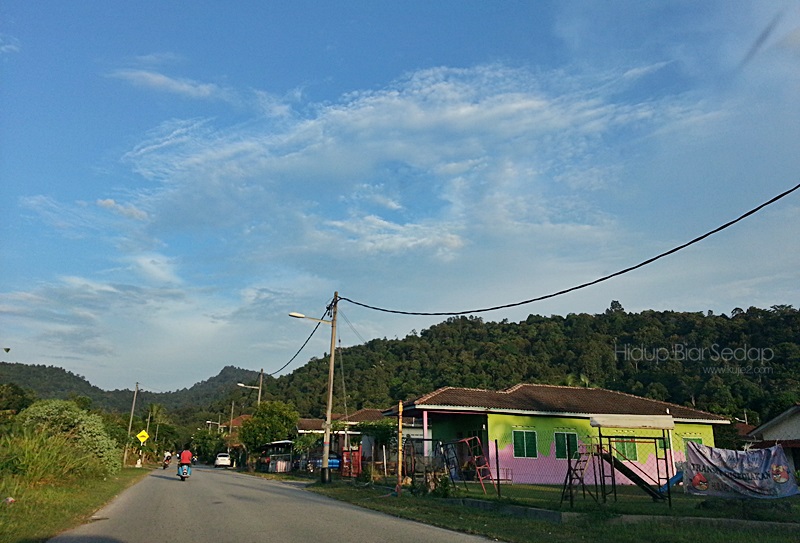Seronoknya nampak bukit bukau sekeliling rumah yang makin jelas kehijauan. Rasa teruja sangat dengan langit biru, saya keluar rumah dan abadikan beberapa gambar langit biru menggunakan telefon.