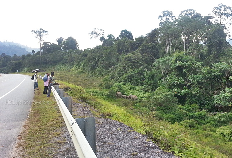 Saya dah ke sini 4 kali dan belum pernah sekali pun terserempak dengan gajah.Menurut suami, dia dah banyak kali terserempak gajah bila melalui kawasan ini. Berung pun pernah nampak.