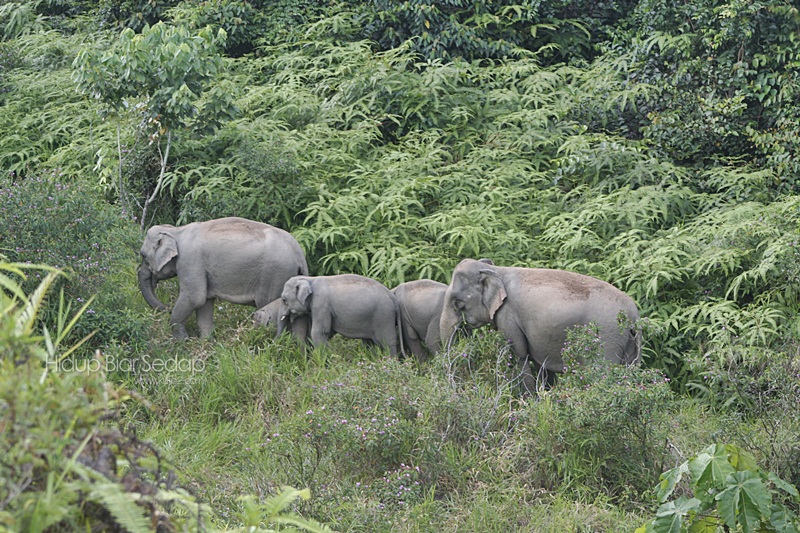 Keluarga 5 ekor gajah liar ini bersama 3 ekor anak termasuk seekor bayi gajah. Bila tengok keluarga gajah ini ada generasi baru, ada anak kecil , saya rasa populasi gajah liar di Malaysia masih terkawal.
