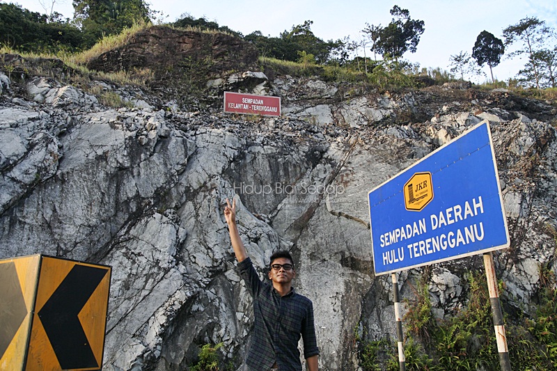 Selepas Gua Musang, kami memasuki laluan Jalan Felda Aring. Selepas melalui jalan berbatu, berdebu dan berlopak , akhirnya kami memasuki sempadan Negeri Terengganu.