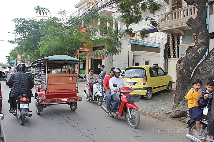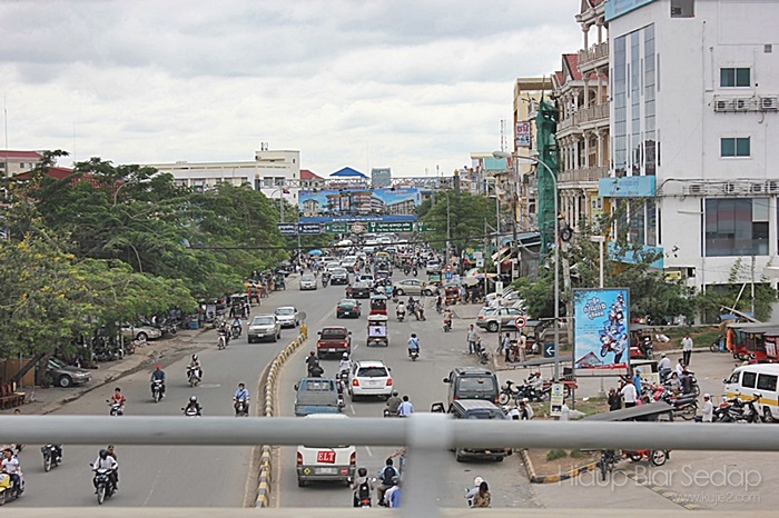 Secara umumnya beginialah pemandangan di bandar Phnom Penh. Sistem pemanduan di sebelah kiri. Tak banyak bangunan tinggi, sesedap mata memandang dan lebih tenang walaupun kita melihat pergerakkan kenderaan kereta motor basikal dan tuk tuk yang bersimpang siur tetapi keadaannya menjadi teratur kerana penduduknya mempunyai sikap tolak ansur yang tinggi.