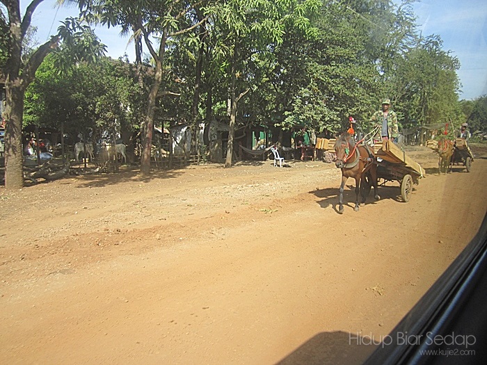 Jalan raya dikongsi dengan bas, lori, motorsikal , kereta yang pelbagai guna membawa muatan melebihi muatan, ada kereta lembu malah juga kereta kuda.