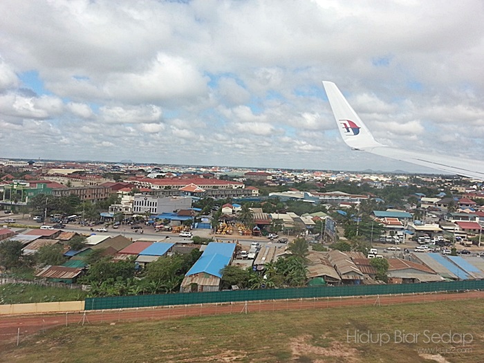 Kami mendarat jam 10.15 pagi selepas penerbangan selama 1 jam 50 minit. Waktu tempatan di Kemboja lewat satu jam dari negara kita. Pemandangan dari udara sebelum mendarat.