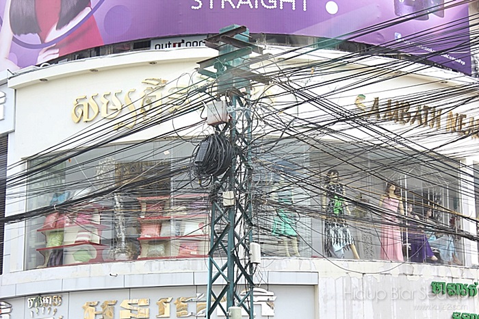 Keadaan tiang elektrik dan telefon sama saja dengan di negara Thailand. Juruteknik di sini tentunya mempunyai skil yang tinggi untuk menguruskan setiap tiang yang terdapat di Phnom Penh