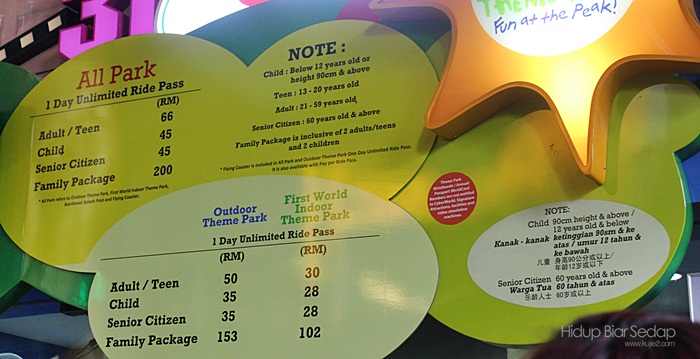 * Kanak-kanak  berumur 12 tahun ke bawah dan mesti ketinggian 90sm ke atas.  Kalau tak cukup tinggi, tak boleh main.