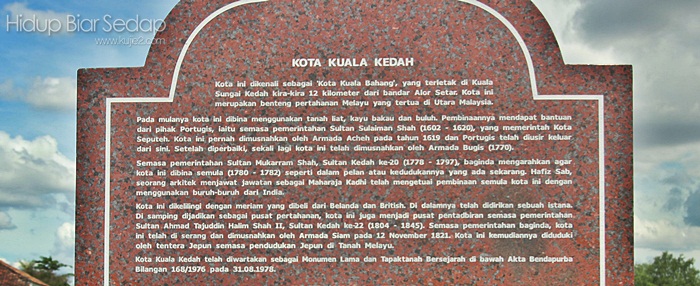 Percutian saya macam pertukaran mata pelajaran di sekolah pula. Kalau dari entri pertama kami anak beranak mengenal matapelajaran Geografi dengan melihat pembentukan Stalaktit dan Stalagmit di Gua Tempurung, kali ini kami sekeluarga menjejak memasuki kelas Sejarah di Kota Kuala Kedah.