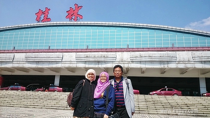 Selepas terbang 4 jam, kami selamat mendarat di Liangjiang International Airport Guilin pada jam 10:30 pagi. Kami bertiga dan cik Intan ponteng sekolah…issshhh…dendiam tau!