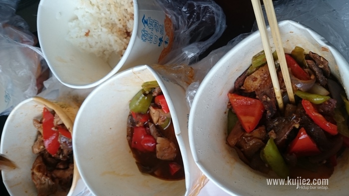 Hari ke -4, kami tapau aje makan malam. Semua sedap….nasi yang sedap, ayam, daging lembu dan kentang . Dari pemeerhatian, makanan di Guilin dibungkus menggunakan mangkuk kertas seperti ini.
