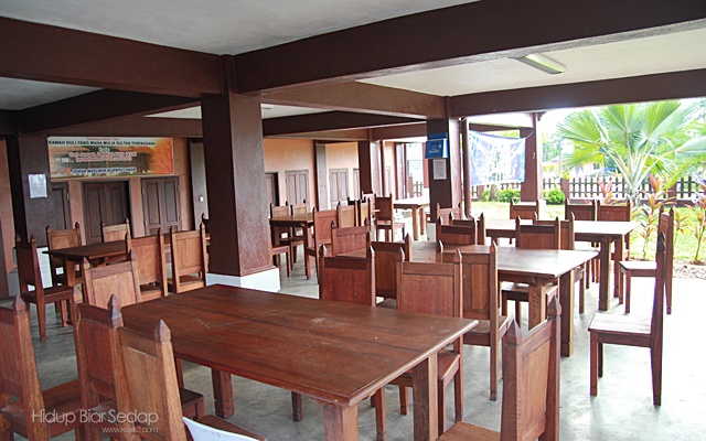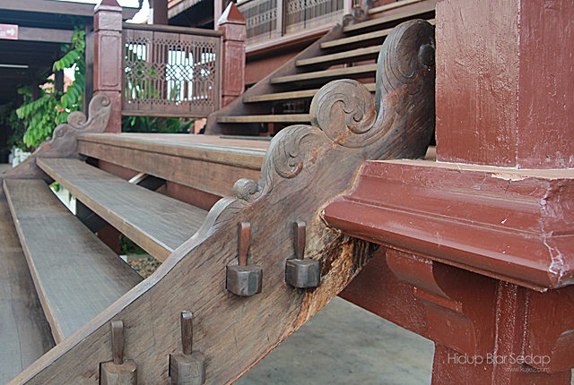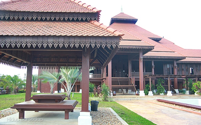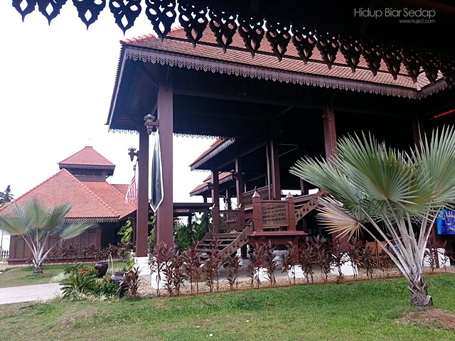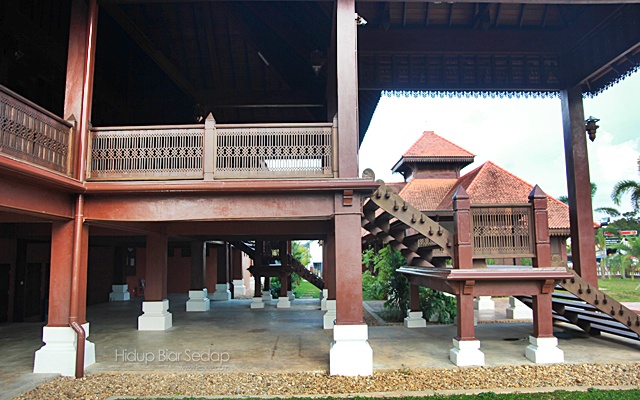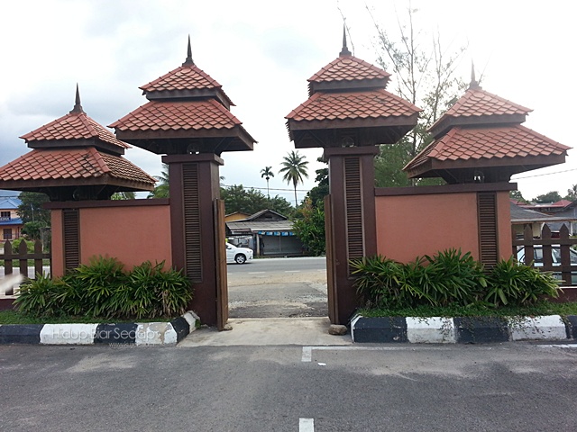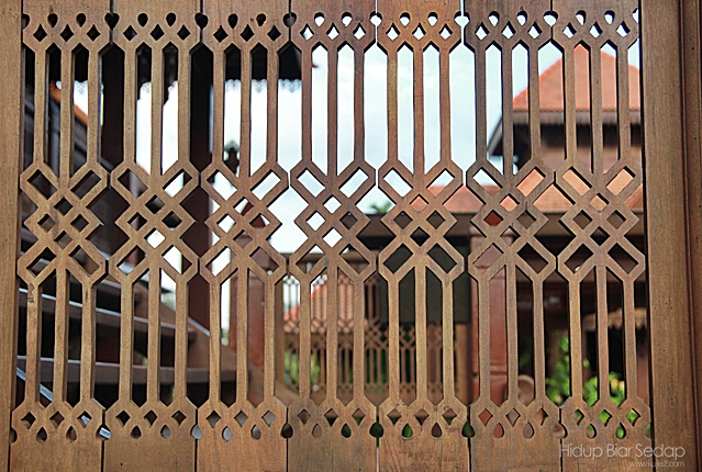 Pagar kayu di ruang serambi juga berkonsepkan corak tenunan songket Terengganu.