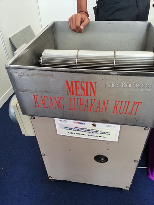 Saya sungguh tertarik dengan beberapa ciptaan inovasi yang dipamerkan oleh pihak Giat Mara seperti dari Pusat GiatMara Jelebu, Negeri Sembilan dengan produk ciptaan yang dinamakan Beanskin Machine atau nama uniknya Mesin Kacang Lupakan Kulit. Mesin ini berfungsi untuk menggoreng, meramas dan menampi dan mengasingkan lapisan kulit kacang tanah.