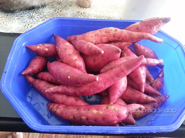 Inilah hasil borong di Karnival Usahawan Desa – KUD2013 , Ubi Kentang Madu katanya. Ubi ini datangnya dari ladang di tanah tinggi Lojing, Kelantan yang berdekaran Cameron Highlands. Saya peminat keledek.