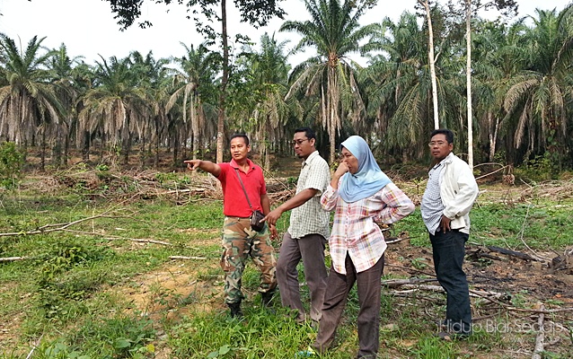 Tuan tanah kedaung sedang melawat tanah sekangkang anak kera yang telah dibersihkan dan dalam proses menanam semula.