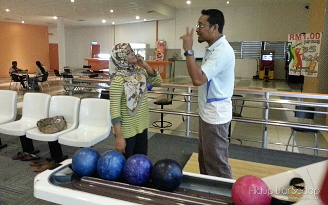 Petangnya kami keluar ke Rawang. Main bowling anak beranak.