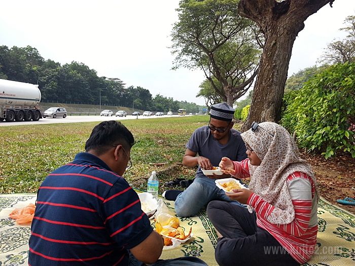 Banyak kelebihan kalau kita dah siap bawa bekal bila berjalan di musim cuti macam ni. Biasanya kesesakan akan berlaku di setiap Hentian Rehat sepanjang lebuh raya dan cara paling mudah adalah sediakan tikar dan bekal sendiri. Bentang saja di mana yang redup, boleh berkelah bersama keluarga.