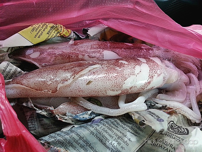 Dapat sotong yang cantik ini dengan harga RM 20 sekilo. Goreng tepung sedap ni. Rare tu balut dengan suratkhabar lama.