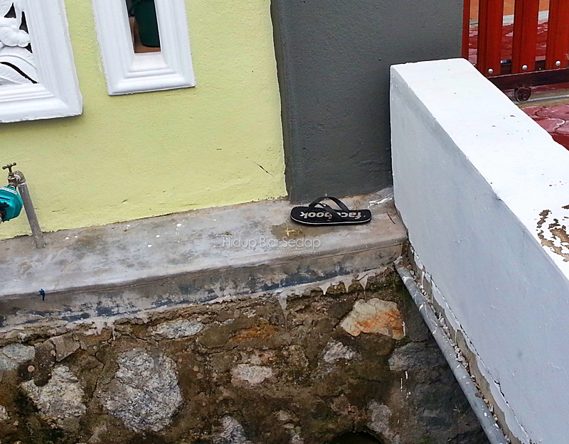 Hari ini anak saya yang paling kecil Aslah campkan selipar dalam sungai Chiling. Tak sempat hendak diselamatkan.