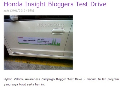 Pandu uji Honda Insight 2 hari 1 malam ke Melaka bersama blogger² terkenal lain.