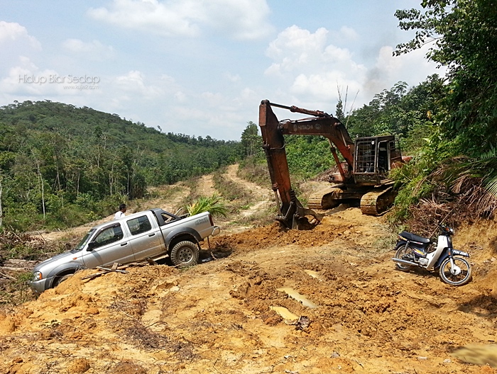 Musim hujan sekarang dan jalan baru ditolak…tanah masih lembut. Jalan masuk tu kawasan laluan air, jalan memang licin.