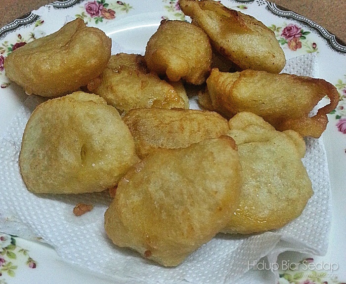 Siap….. mudah senang dan sedap. Gorengan pisang seperti ini ‘makan minyak’, alas dengan tisu dapur. BIla gigit, terus terasa kemanisan pisang.