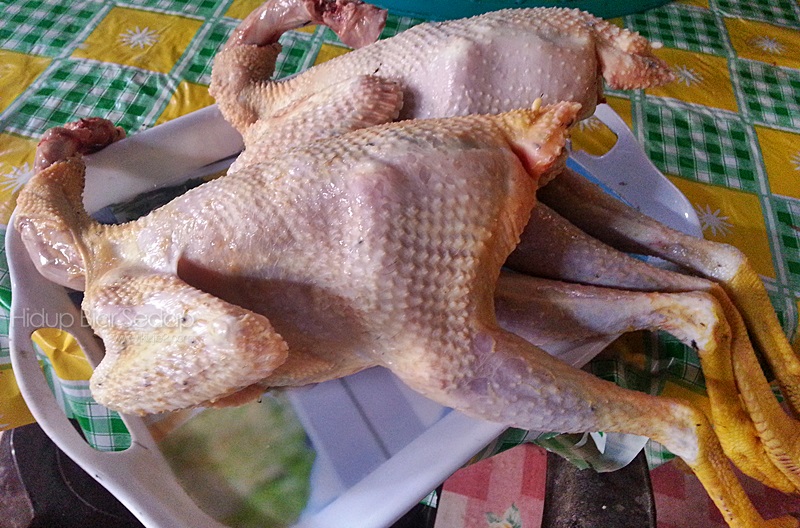 Ini juga bahan penting. Ayam kampung. Mak memang tak makan ‘ayam bandar’ jadi memang mak bela ayam. Bila anak cucu balik kampung, beberapa ekor akan dikorbankan.