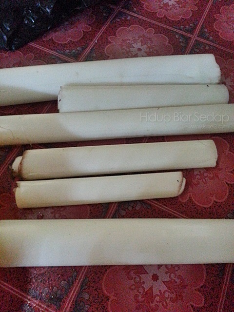 Inilah rupa batang pisang atau lebih tepat umbut pisang. Bahagian ni kena buang lagi kulit luarnya. Umbut yang digunakan adalah bahagian paling akhir , kalau buang bahagian tu … dah tak ada…. hiks!