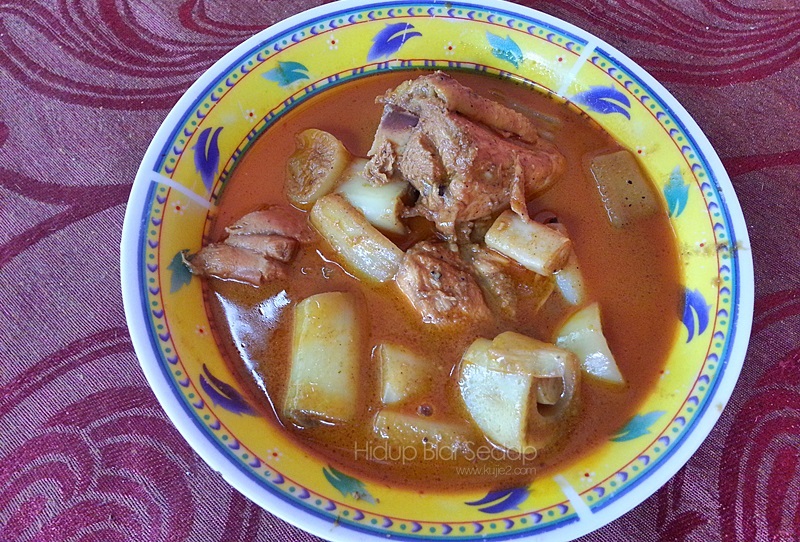 Rempah kari pun boleh, gulai lemak kuning pun boleh. Tapi for me, guna kari lebih sedap kot, serba lengkap lemak ada pedas pun ada. Then bila kari tu meresap dalam batang pisang yang lembut tu.. arhhh perfection!