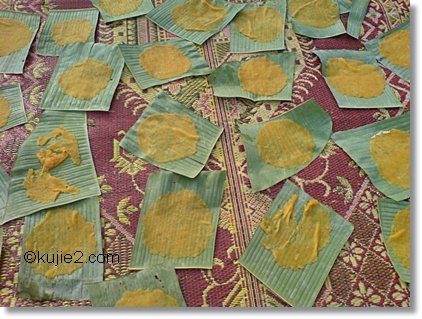 Keluarkan dari tudung periuk, letak atas daun pisang dan dijemur. Yang tak cantik tu Intan buat…lalalala...kejap lagi dia baca ni menjerit satu rumah!![]()