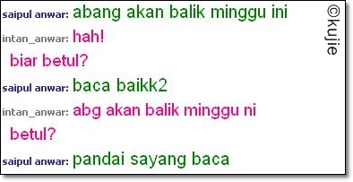 owhhh..teringat ketika cikmin berjauhan dengan suami beberapa tahun lepas,bila dapat ayat lebih kurang macam kat atas tu,hati tetiba jadi tersangat rindu tak tergambar!terasa macam nak terbang..eheheh..