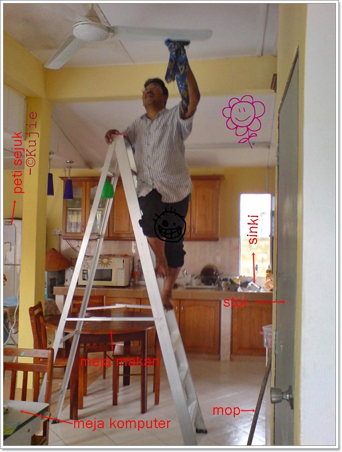 Bukan sebab nak dera cuci kipas siling lagi. Kalau dia tak ada saya boleh cuci sendiri, kalau dia ada saja² bergedik manja tangan lembek, nanti kasar tak boleh buat kerja.