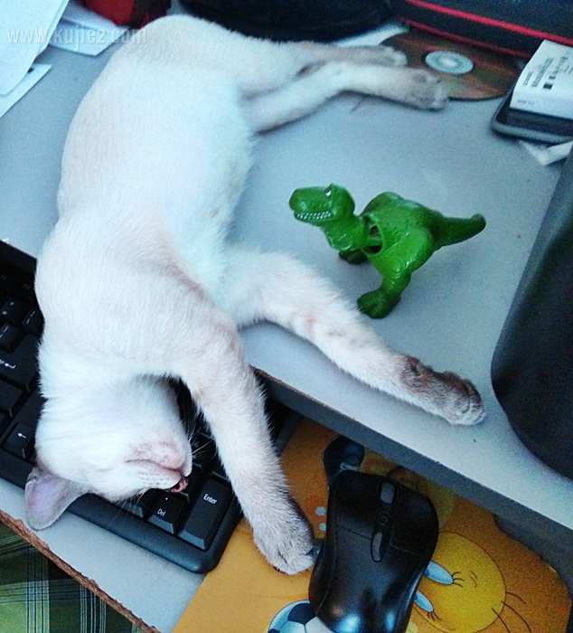 Tyrannosaurus Rex warna hijau : “Abang Melati…bangun….bangun, mama nak update blog tu”
