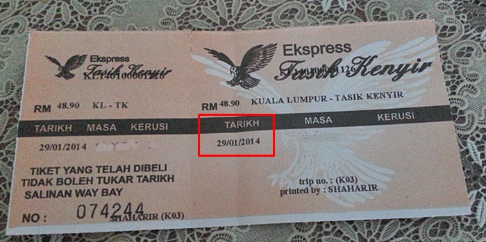 Baru tahu ada tiket terus ke Tasik Kenyir 🙂
